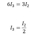 Se expresa esto en términos de I1 e I2 como en la ecuación de los voltajes para obtener lo siguiente: