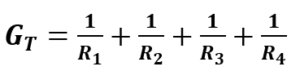 La conductancia o resistencia en paralelo es igual a la suma de las conductancias individuales.