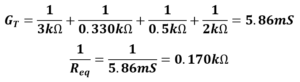 El valor de la resistencia equivalente es de 0.170k aplicando el método de conductancia.