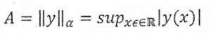 En una sinusoide; es el máximo alejamiento en el valor absoluto de la curva medida desde el eje . Desde un punto de vista más técnico, la amplitud de la sinusoide es la norma del supremo de la sinusoide: