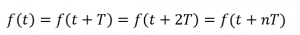 Puesto que la magnitud oscila en función del tiempo f(t) , y puesto que al cabo de un intervalo de tiempo T los valores de la magnitud se repetirán, tendremos: