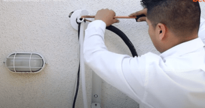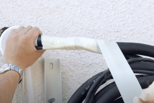 20- Encintar las cañerías y los cables para que todo salga fácil por el orificio perforado.