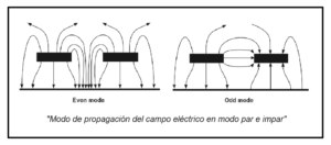 Hablar de modo par e impar es equivalente a hablar de modo común y diferencial en un par diferencial. Cada modo implica un camino de retorno diferente para la corriente y el campo eléctrico generado, lo que constituye un desafío en el diseño de pares diferenciales.