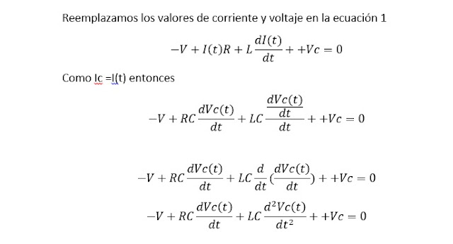organizando la ecuación diferencial. e igualando a voltaje que de negativo pasa a positivo finalmente la ecuación queda de la siguiente manera: