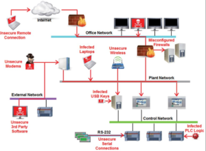 Malware y virus: Los PLCs también pueden ser infectados con malware o virus a través de dispositivos de almacenamiento extraíbles o mediante la explotación de vulnerabilidades en el software utilizado para programarlos. Estas infecciones pueden afectar el rendimiento y la seguridad de los PLCs.