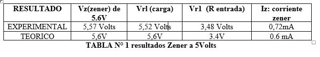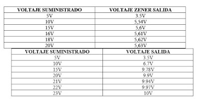 Los datos mostrados en la presente tabla corresponden a un diodo zener de 5V