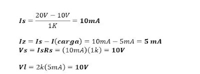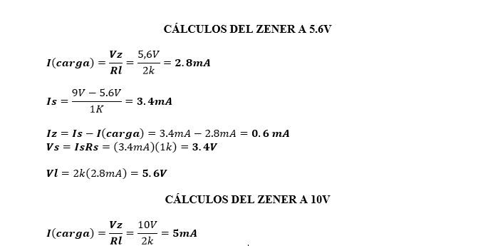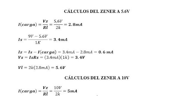 Después de haber obtenido los valores de voltaje a la salida para cada zener cuando se presentaban variaciones en la fuente, se procedieron a efectuar los cálculos para corroborar los resultados obtenidos teóricamente.