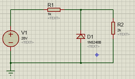 * Si un diodo zener no se energiza a un voltaje proporcional al de fijación, el circuito será como 2 resistencias en serie con una fuente y por ende el diodo se comportará como un circuito abierto.