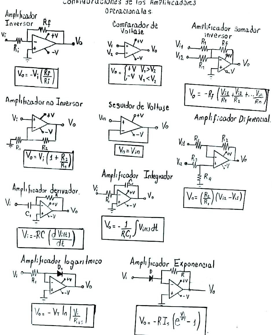 A continuación, se presentan diez configuraciones clásicas de amplificadores operacionales, ampliamente utilizadas en sistemas electrónicos y de instrumentación: