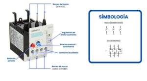 - Contactos auxiliares normalmente abiertos: Se utilizan para activar una alarma en caso de sobrecarga.