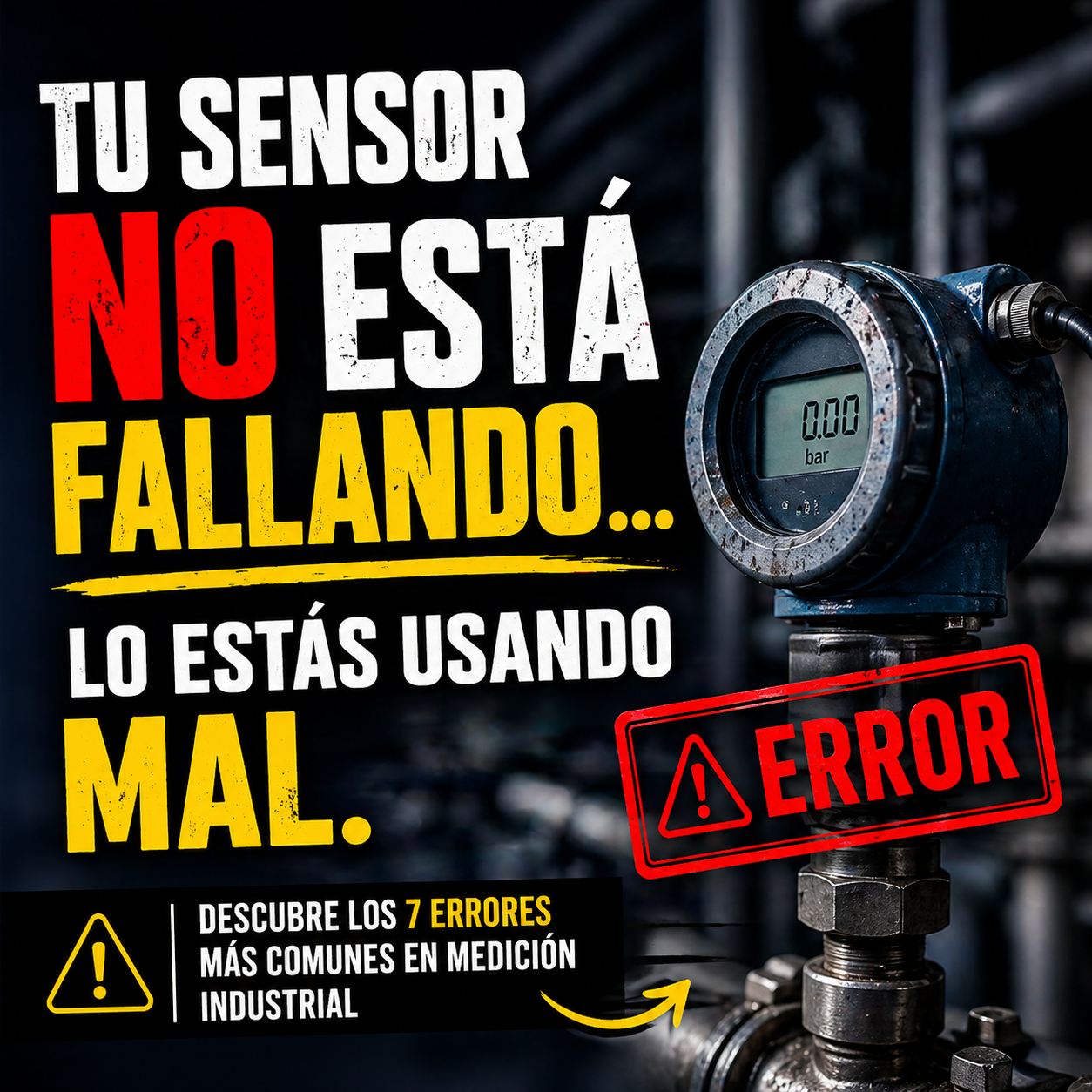 👉 Solución: ubicar el sensor en un punto representativo del proceso, no donde “quede fácil”.
