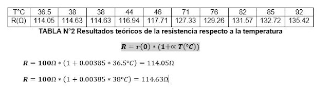 Como tenemos valores obtenidos de laboratorio como son la temperatura del agua en la termorresistencia, nos basamos en dichos valores para calcular la resistencia teórica que arroja a la salida por valor de temperatura obtenido.