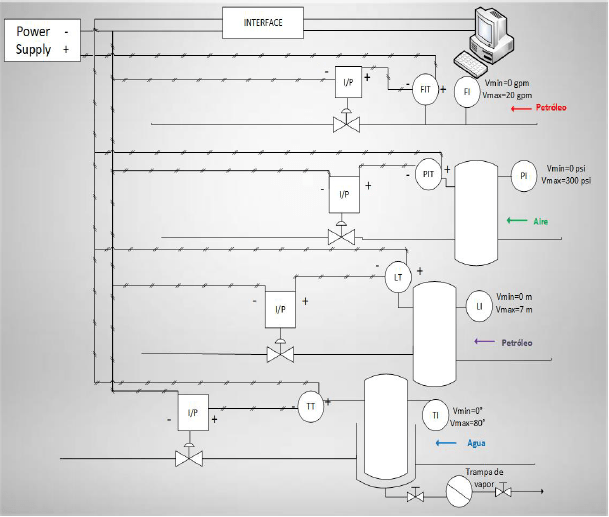 Diagrama P&ID y conexión a dos hilos para medición de variables