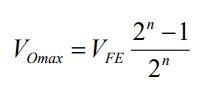 y podemos deducir que el voltaje Vfe es el valor de fondo de escala y el valor máximo de Vo está determinado por la siguiente ecuación: