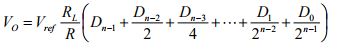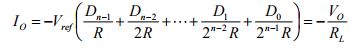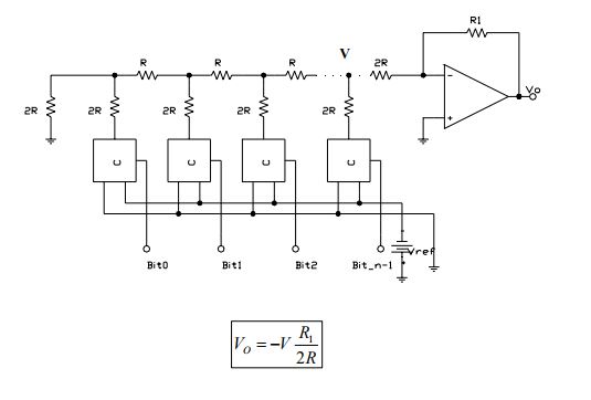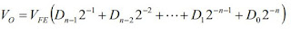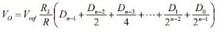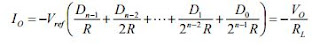 un conversor digital-analógico con un código de entrada en forma binaria pura, obtiene a partir de una palabra digital de n-bits niveles discretos de voltaje o corriente según la siguiente relación matemática.