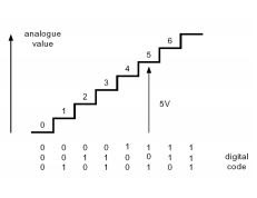 cada valor discreto de unos y ceros debe estar relacionado directamente con el valor previamente definido de una señal analógica tal y como se especifica en la figura 1.