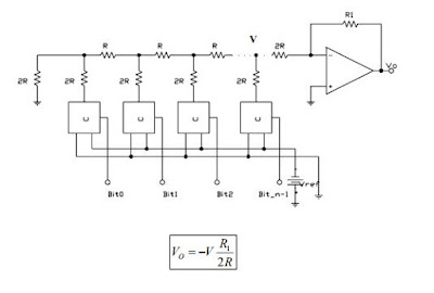 Este circuito posee un sumador que va incrementando los valores de n-bits y a medida que los suma, arroja una señal análoga completamente reconstruida.