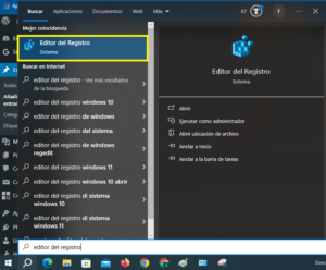 1.Escribe en el buscador «editor del registro«