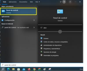 1. Ve a «panel de control» escribiendo en el buscador de Windows