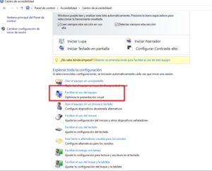 4.Ingresar a la opción «facilitar el uso del equipo»