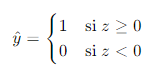 - Las entradas ponderadas y el sesgo se combinan y pasan a través de una función de activación para producir la salida del perceptrón. En el perceptrón simple, la función de activación comúnmente utilizada es la función escalón (o función signo), definida como: