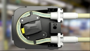 Este movimiento de «amasar» el tubo genera un flujo controlado y preciso del líquido a través del sistema, eliminando así la necesidad de válvulas tradicionales con partes móviles y potencial riesgo de contaminación cruzada.